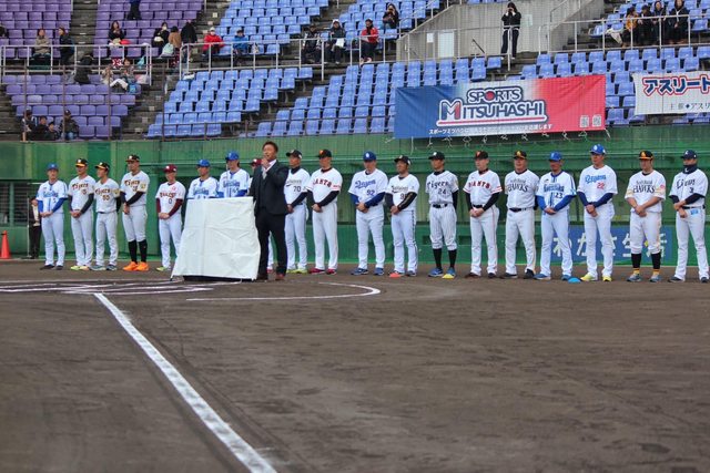 跟其他球團的選手一起指導著小朋友們