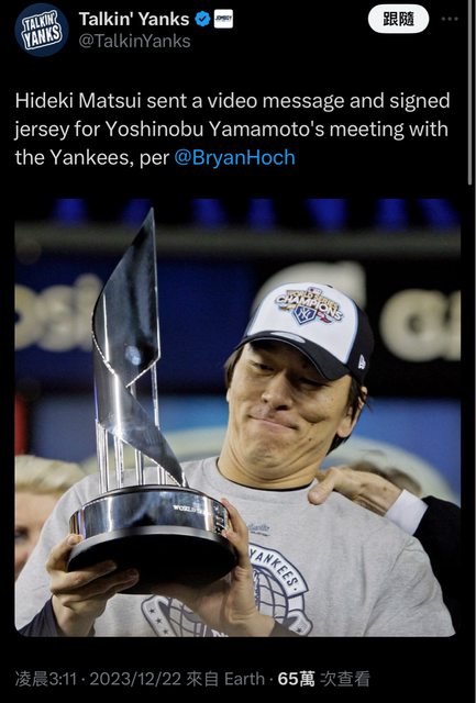 tinbirbir: 松井:如果你來洋基 我就跟你分享我的收藏12/22 11:01