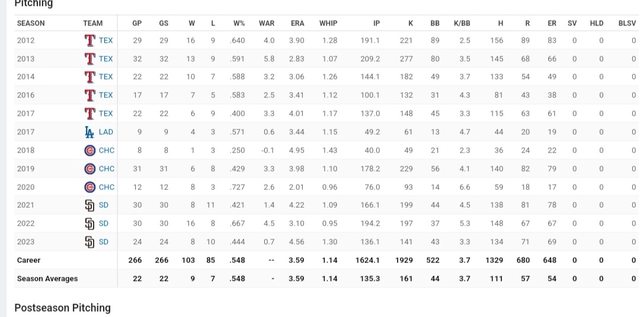 有2季投超過200局,挑戰大聯盟的前一年也投了212局。山本雖有2季投了193局,但上季減
