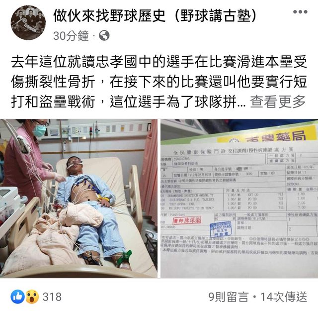 : 天啊,很少看到學生棒球傷到這樣......看照片還以為發生甚麼意外車禍.......