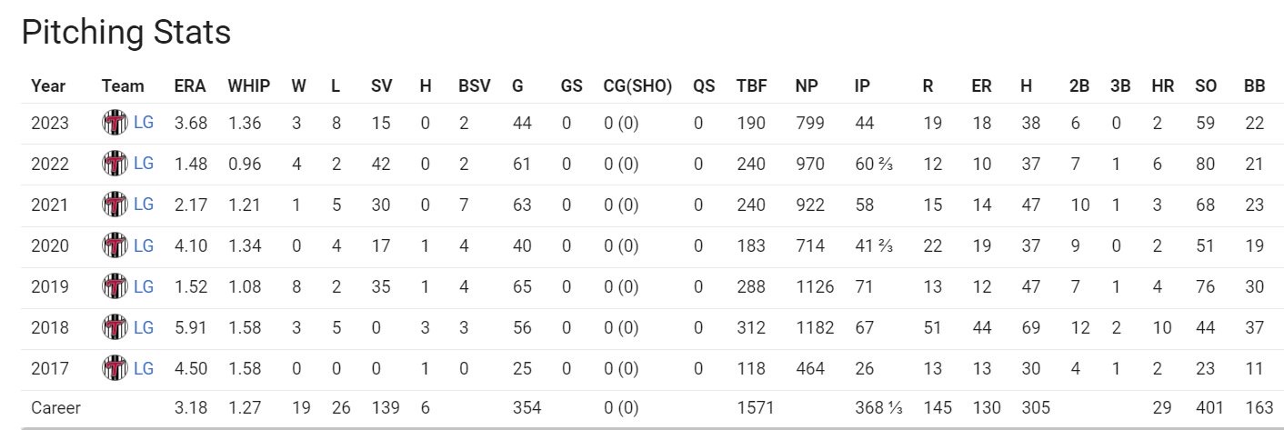 率3..68,職業生涯7年累積139次救援成功、防禦率3.18。去年先在杭州亞運隨隊奪下金
