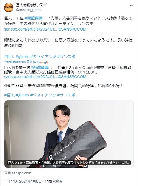 標題[分享] 讀賣巨人1指西舘勇陽 投手