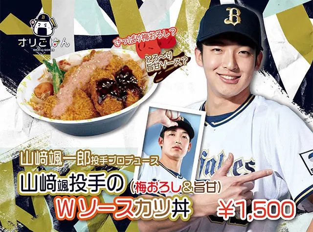 ▲歐力士隊「山崎颯(一郎)投手的雙醬豬排丼」並列第三,其中山崎投手所設計的美食