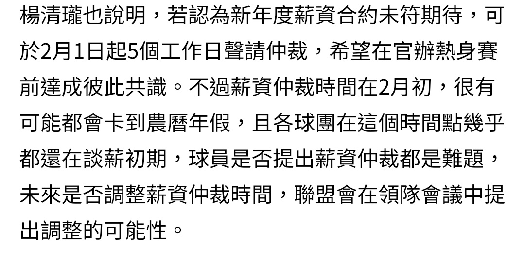 → chdc: 間(1.2月)各隊都在談薪初期 結果調整是把仲裁時間再提前 不 01/22 13:11