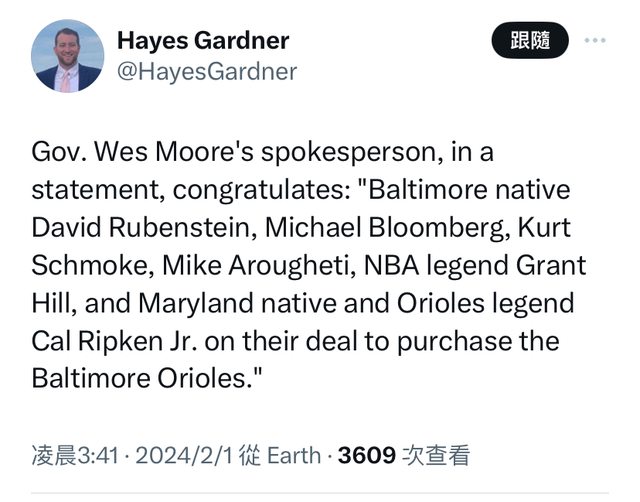 但John Angelos就立馬打電話給馬里蘭州州長Wes Moore