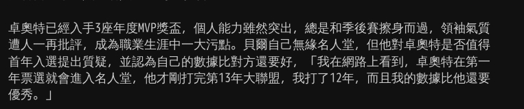 推 jojomickey2: 換個人比應該九成會覺得值得HOF...貝爾真的腦子不聰 02/06 21:51