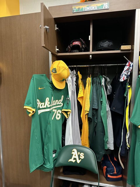而他也在今天稍早在推特放上運動家隊春訓基地的個人置物櫃照片,將會穿上76號球衣