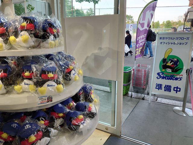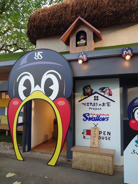 從信濃町往球場方向步行,就能看見燕九郎的家和商品