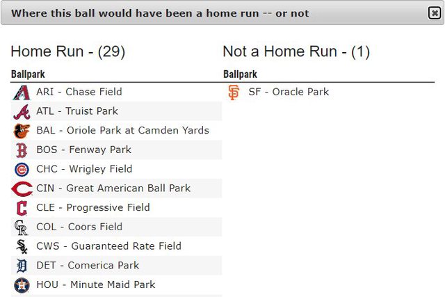 雖然李政厚今天扛了一發初速快110 mph的全壘打 但這顆只能在29個大聯盟球場出去 https://i.imgur.com/MFhYZkt.jpg