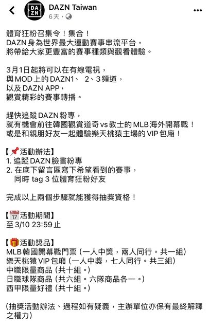 推 Yjizz: 緯來dazn也有喔03/04 21:53