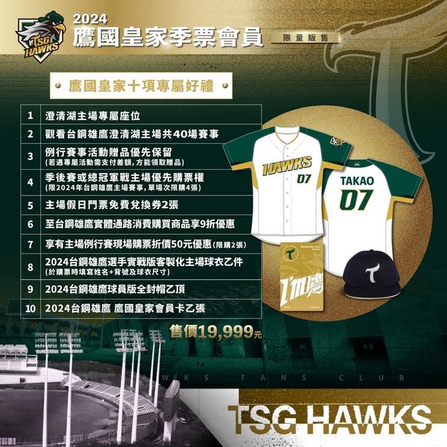 好康贈禮|台鋼雄鷹「鷹國皇家」會員資格(包含以下贈禮)