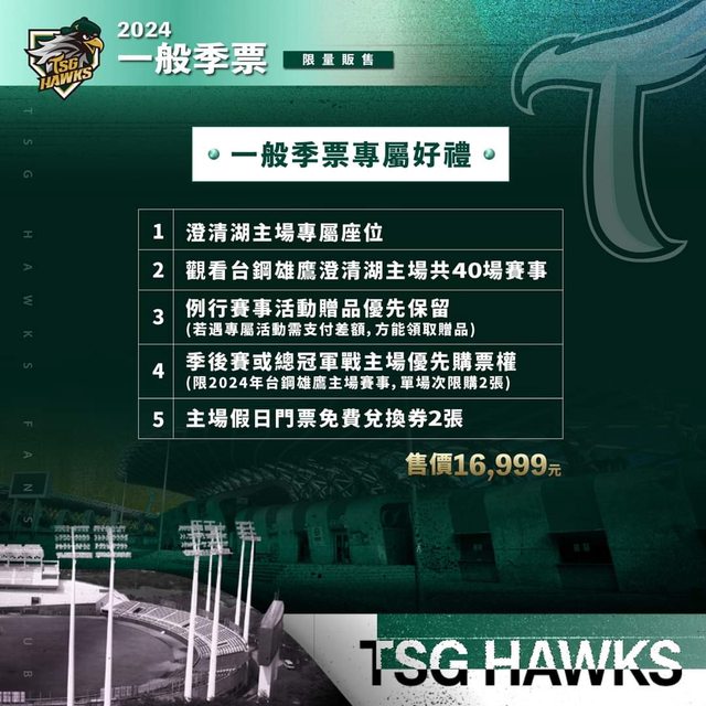 五大好康|台鋼雄鷹「一般季票」專屬好禮