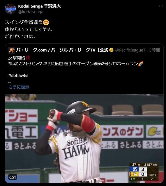 標題[分享] 千賀滉大X轉評熱身賽連3場開轟的甲斐拓也