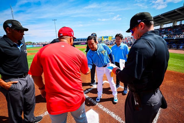 後來他也在今天大聯盟熱身賽賽前交換雙方先發球員名單
