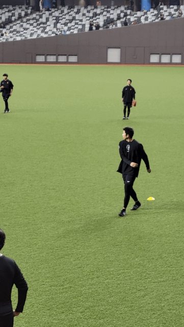 眼看賽前練習就快結束,戶鄉看起來也準備要回休息室,這時他從右外野沿著外野牆走近