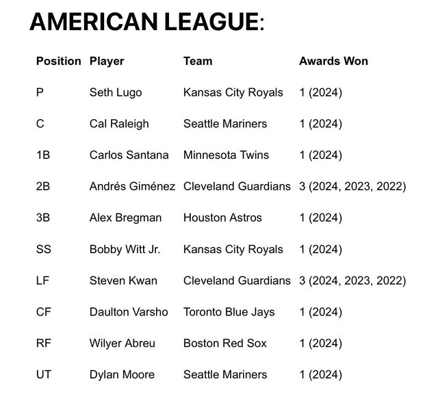 2B:Andres Gimenez(第三次 3連霸 2022 2023 2024)