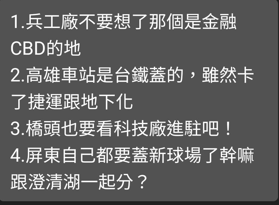 → veter: 蓋橋頭基本上就吃北高+台南,南高的市場就放棄了 11/04 12:33