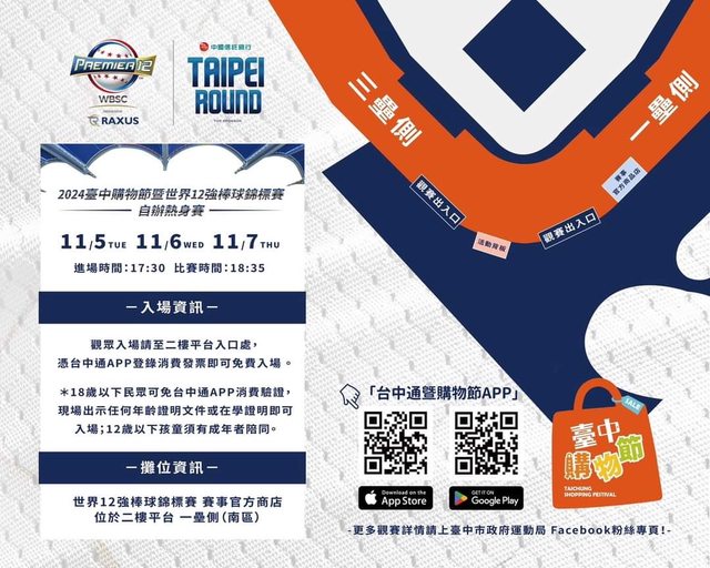 免費入場方式:憑「台中通APP」登錄消費發票頁面,即可免費進場觀賽!