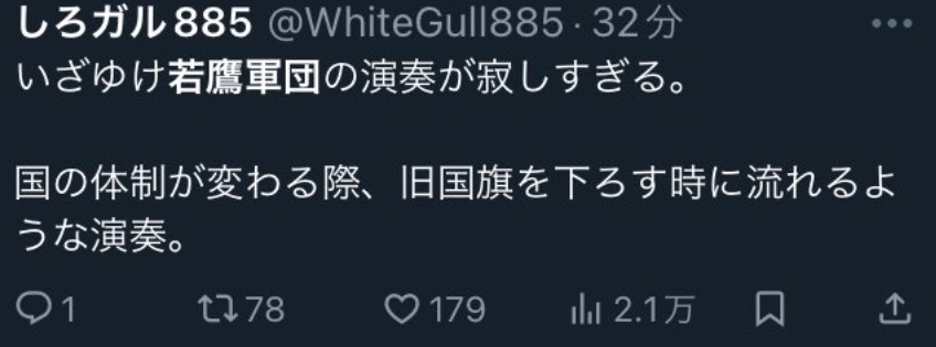 → koei0411: 有人說很像國家更迭時,舊國旗降旗時會演奏的歌曲 11/04 21:15