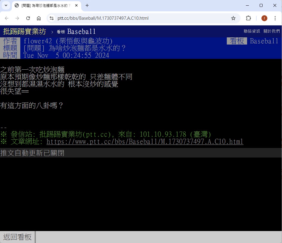 噓 coon182: 炒泡麵太乾你吃的下? 11/05 00:36