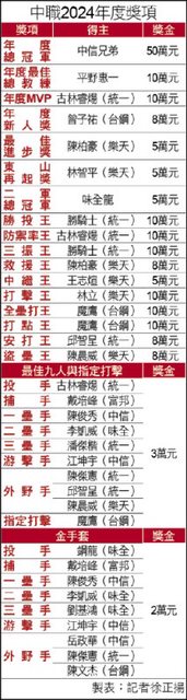 古林睿煬同時拿下防禦率王和最佳10人投手獎,是統一獅隊史繼2009年潘威倫之後,第2
