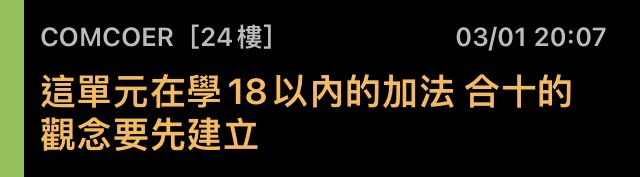 → COMCOER: 18以內的減法 也是從拆十來學習 沒錯 03/01 20:52