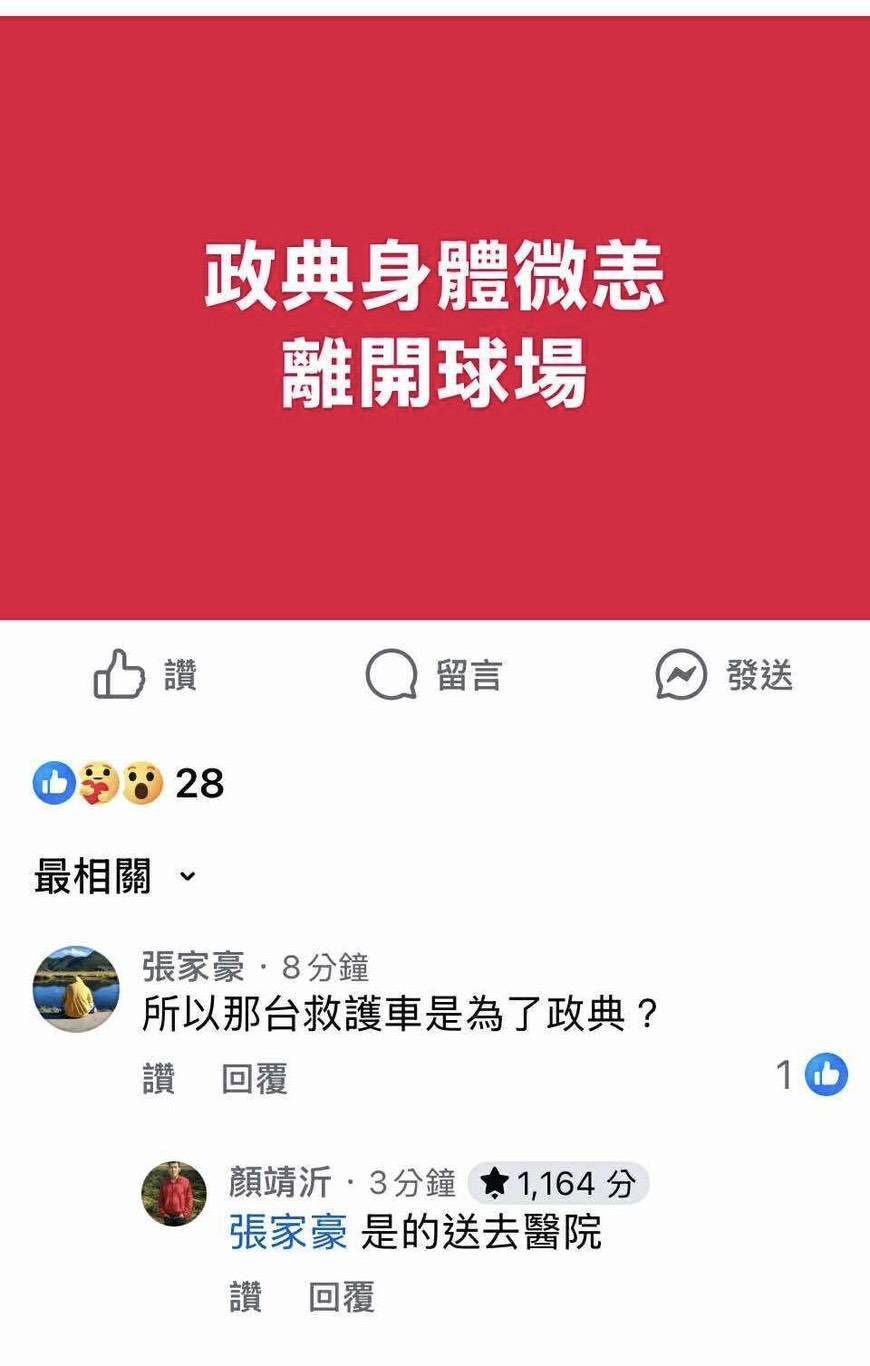 推 laangels27: 剛看到喵社團 好像台南球場外面出現救護車... 06/26 22:03