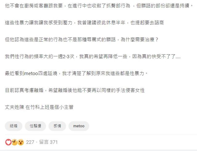 → revon : 都隱忍到結婚了,有問題也是自找的。 06/27 07:06