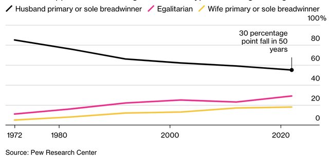 "In almost half of opposite-sex marriages in the US, women now earn at least