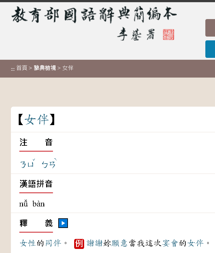 推 darkdust : 女伴本意就是女性陪同出席的夥伴,但是延伸來使用一 08/09 00:19