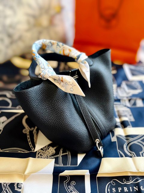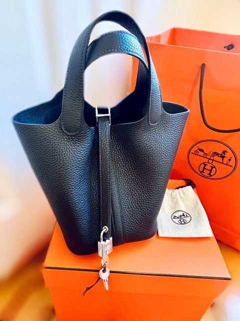 第三個基礎款包是Hermes的Picotin 18,2022年新色3Y(無限接近黑色的深藍)銀扣,TC