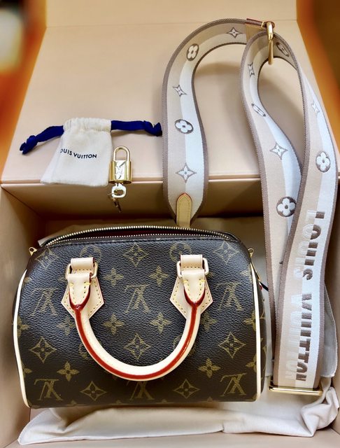 從speedy 20開始,肩帶是去年剛出的新款顏色米色/卡其色。