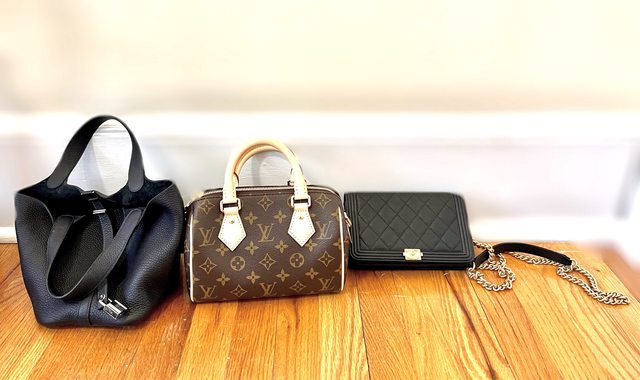 以下文長圖多,共分享三款:LV的speedy 20老花款、Chanel黑金菱格紋boy woc,和Herm