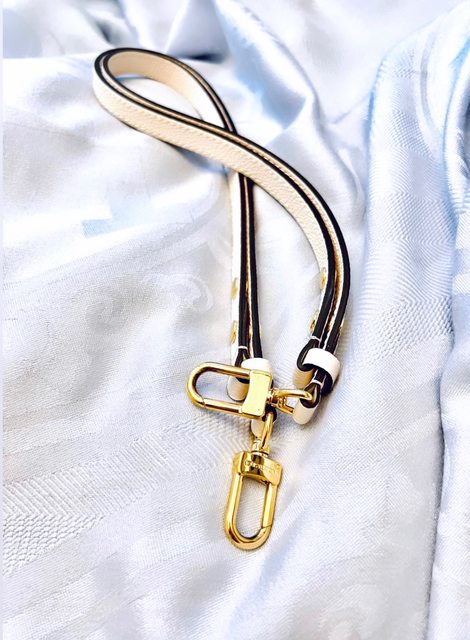 因為實在無法喜歡原版肩帶,幫包換上了家裡LV其他包款的素面牛皮肩帶。