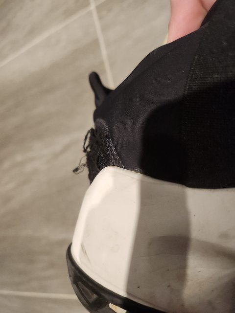 易被勾到,我就懶,當時急著脫,用腳直接去脫,所以兩隻腳後跟的部分都被我勾脫線