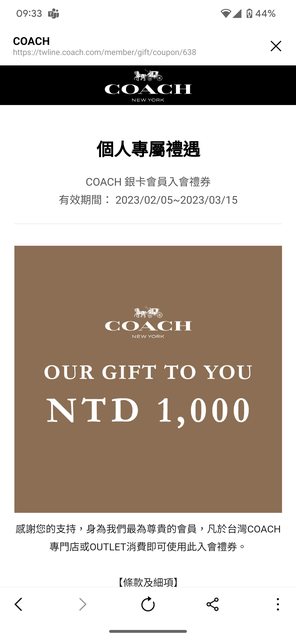 [其他] 贈送Coach禮金1000
