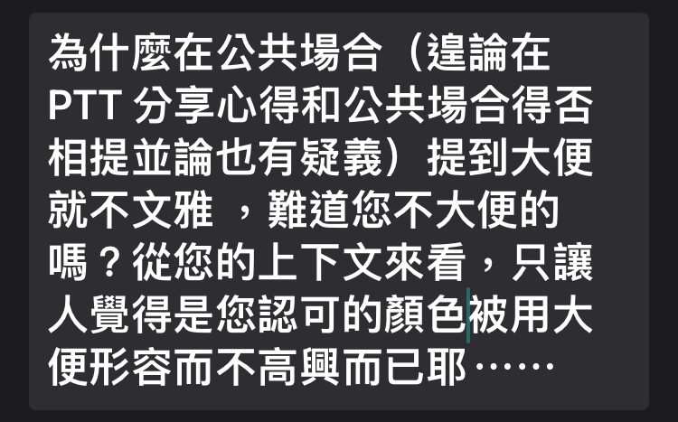 → laconism: 話,也是尊重原po, 只是對於用排泄物來形容覺得不妥06/28 11:08