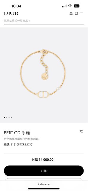 1. Dior CD手鍊 / 退稅後$10895 / 對比台灣約78折