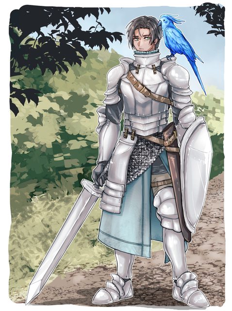 鸚鵡晴晴看戰鬥告一段落,飛回理查肩上。「嘎!理查大人威武!」