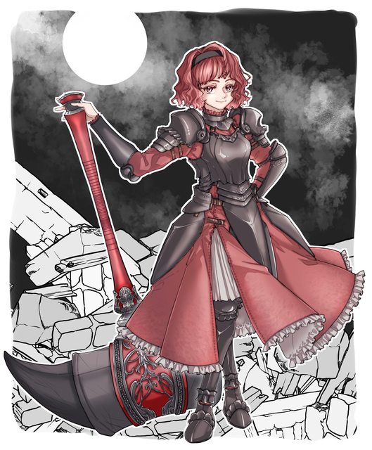 「妳還好嗎?需要休息一下?」薇爾娜呼了口氣,這才在靴子上擦去血與油脂,納劍入鞘