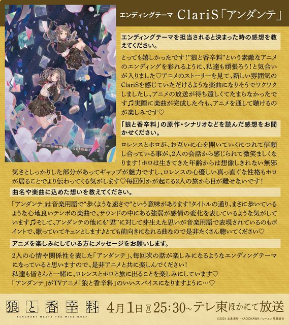 標題[情報] 狼與辛香料 OP ED擔當 公布