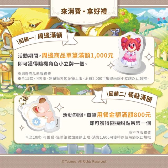 (周邊商品無服務費。全15款,可累贈,無單筆累加金額上限,消費2,000可獲得兩個小立牌