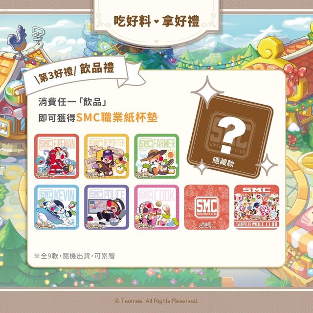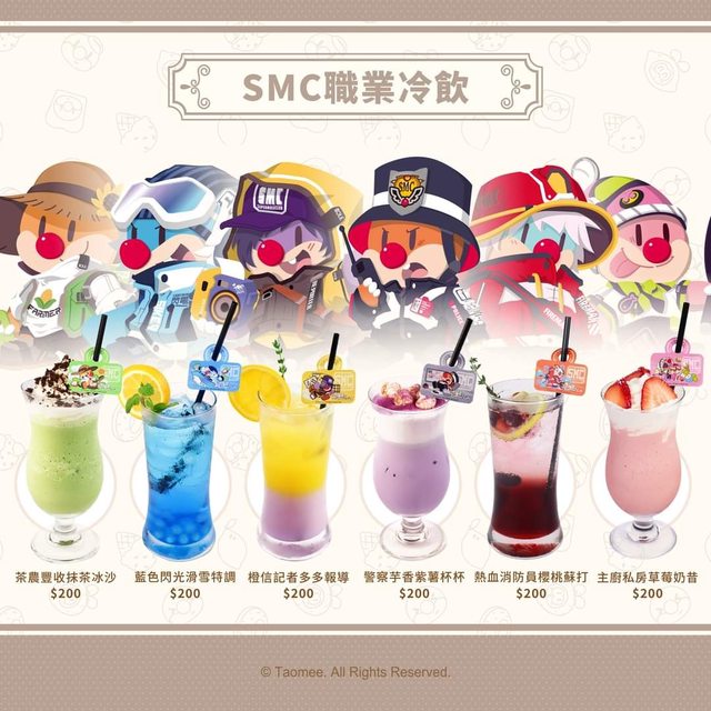 這次除了有角色主題的「摩爾餐廳」系列餐點、「SMC職業系列冷飲」、隨機角色拉花奶蓋
