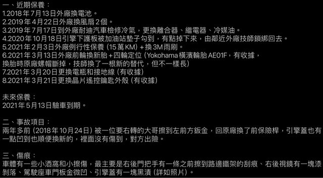 以下是前車主的保養紀錄:
