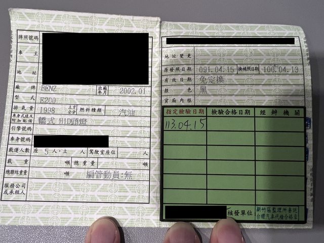 車款型式/排氣量: E200 / 1998
