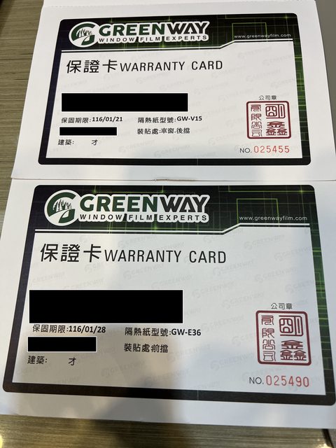 2. 重貼隔熱紙,原隔熱紙隔熱效果不佳,車內所有隔熱紙都是去年重貼,保固至2027