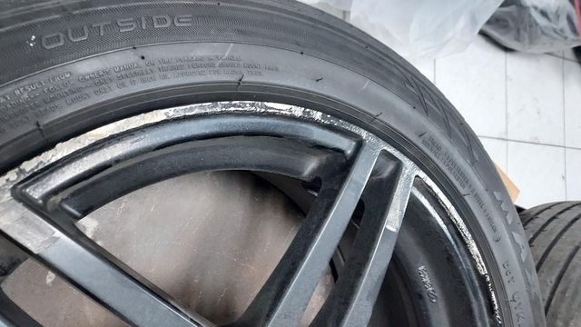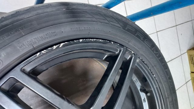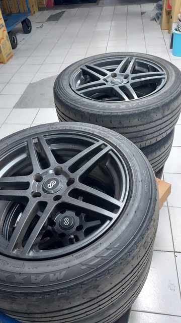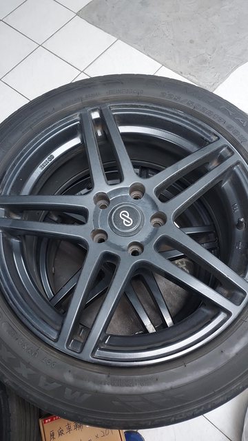 17吋,114,5孔,7.5J,ET42,一圈重量不到10kg。台製enkei黑色鋁圈,品項沒有很好?