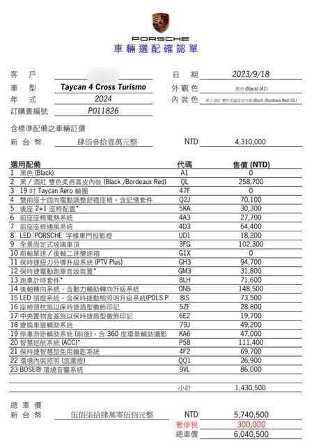 車輛品牌/產地/出廠年月: 保時捷/德國/2024年1月