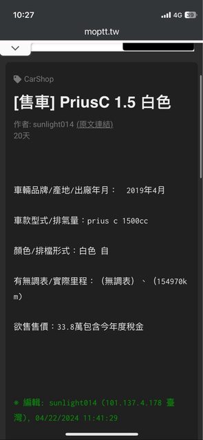 推 yuio300: 售車版應該要推強制揭露車牌才能po文1.200.182.132 05/06 23:17