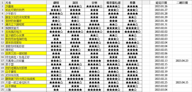 → sleepsnow: 黃底是不同平台的劇,原po用來區分的,內文有寫 01/01 01:46